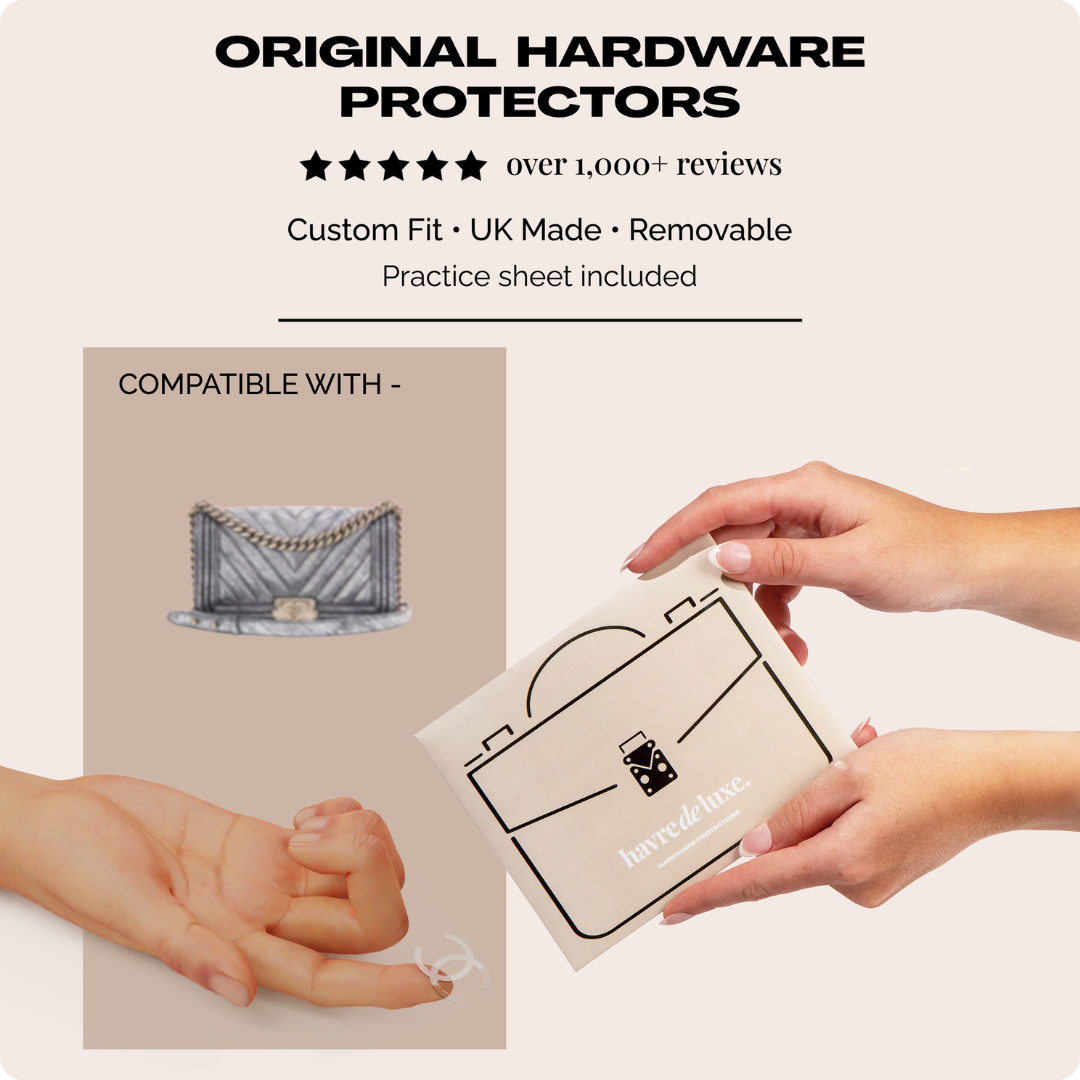 Our protectors are designed to be as discreet as possible while still providing valuable protection. They also feature a self-levelling design, meaning they’ll become even less visible over time. For reassurance, check out our unfiltered product images, which showcase how seamlessly our protectors blend with your handbag’s hardware.